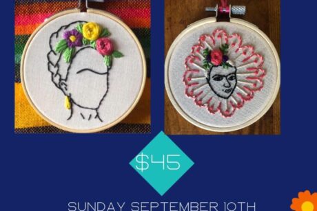 Frida Kahlo Hand Embroidered 3″ Hoop Ornament